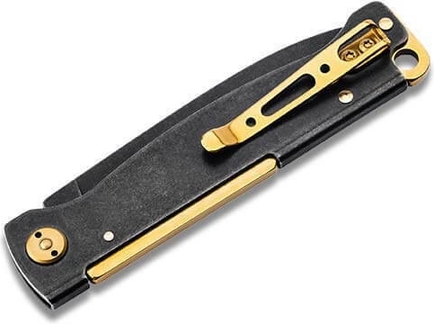 De elegante EDC-zakmes Böker Plus Atlas biedt een minimalistische constructie, een betrouwbaar lemmet van 12C27-staal met een zwart Blackwash-oppervlak en comfortabel handmatig openen via nagelgleuf. Dankzij het Slipjoint-mechanisme, de stalen greep met messing accenten, clip en koordoog is hij ideaal voor dagelijks dragen en als gentleman’s mes.