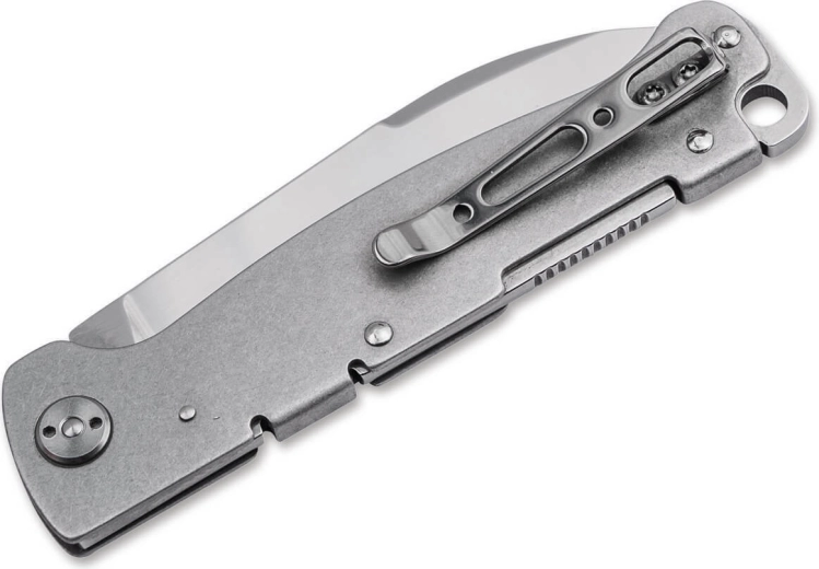 De minimalistische roestvrijstalen handgreep met aantrekkelijke Stonewash-look is krasbestendig en ligt prettig in de hand. Het mes opent handmatig via de nagelgleuf in het lemmet en wordt betrouwbaar vergrendeld met een backlock, zodat je verzekerd bent van veilig gebruik. Een praktische broekclip en een koordoog maken dragen en snelle toegang eenvoudig.