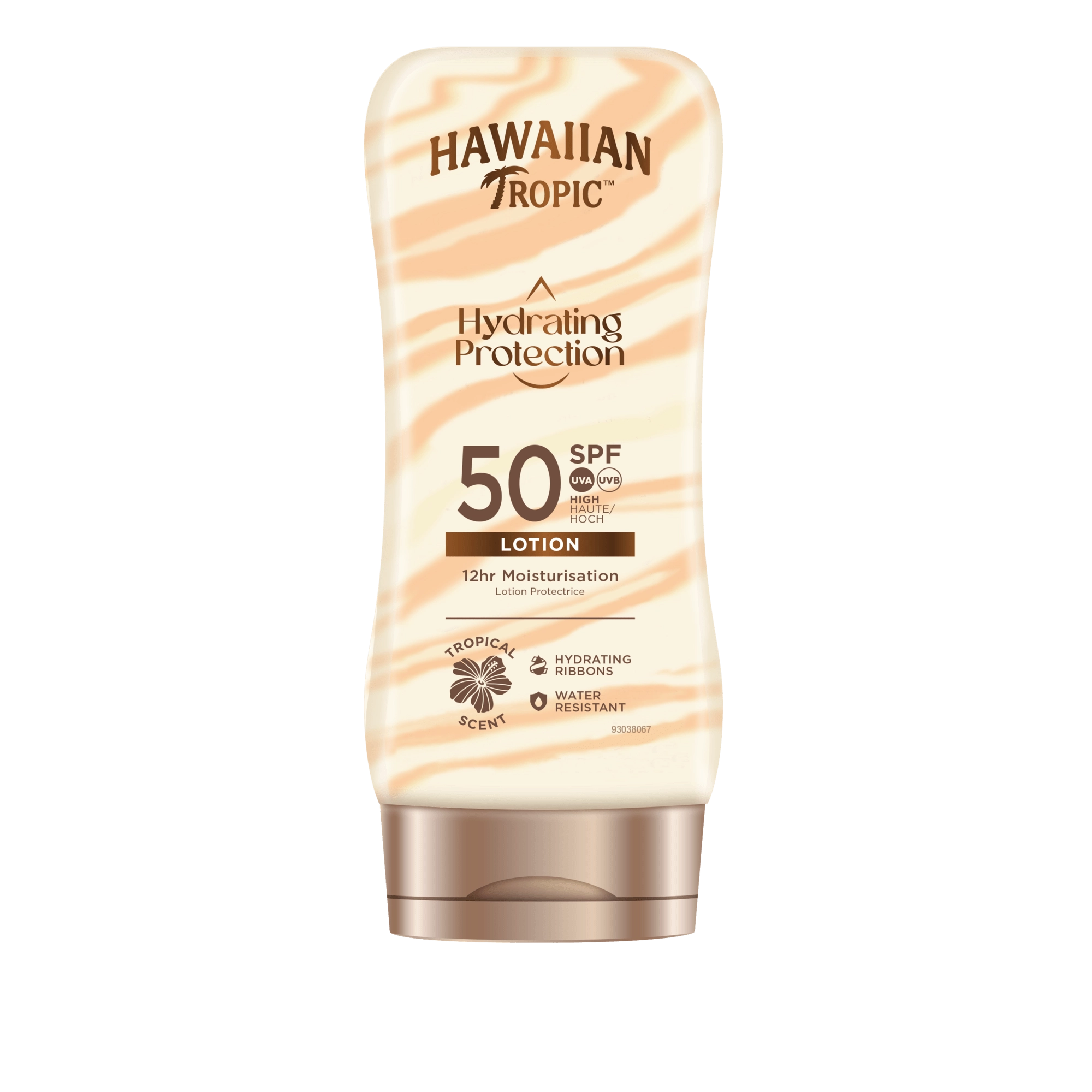 Hawaiian Tropic Hydrating Protection Lotion is de ideale keuze voor dagelijkse zonbescherming. De lichte textuur wordt snel opgenomen, laat de huid zacht aanvoelen en plakt niet. Met SPF 50 biedt het betrouwbare bescherming tegen de zon en verzorgt het tegelijkertijd de hydratatie van de huid.