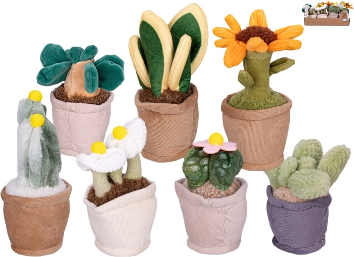 Schattige en superzachte pluchen kamerplanten Take Me Home met een hoogte van 12–17 cm, perfect als decoratie én speelgoed. Verkrijgbaar in 7 verschillende soorten (zonnebloem, viooltje, roze bloem, gele bol, dracaena, palm en cactus zonder bloem), onderhoudsvrij en veilig voor kinderen vanaf de geboorte (0m+).