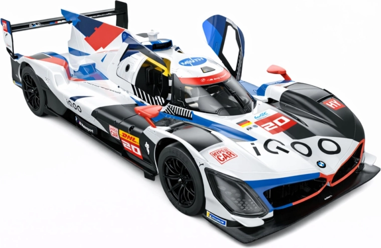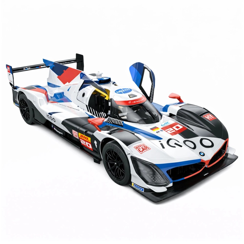 De RC BMW M Hybrid V8 weerspiegelt trouw de echte endurance‑special: van de aerodynamische carrosserie tot de doordachte cockpitdetails. Hoogwaardig ABS‑materiaal en precieze mechanische en elektronische componenten garanderen duurzaamheid en betrouwbaarheid voor rijden binnen en buiten.