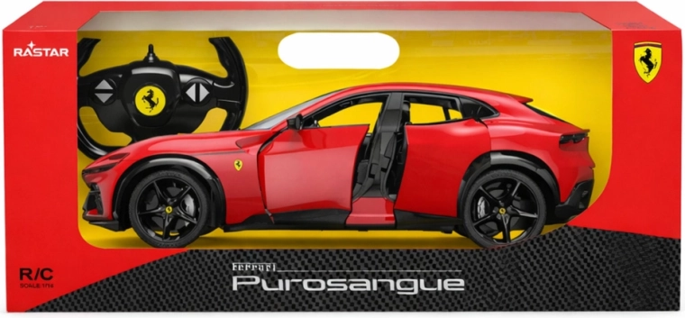 Stijlvolle RC auto FERRARI Purosangue op schaal 1:14 biedt een realistische uitstraling, 2,4 GHz besturing zonder interferentie en koplampen en achterlichten. Dankzij de onafhankelijke vering, openende deuren en zorgvuldig uitgewerkte details genieten zowel kinderen als volwassenen van de rit.