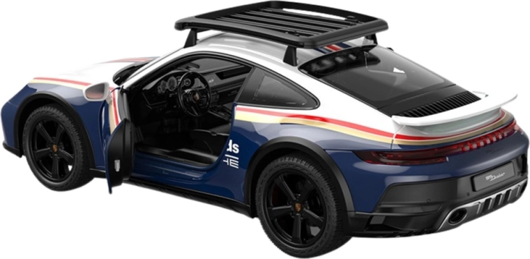 Ontdek de combinatie van sportieve dynamiek en offroad-stijl met het gelicenseerde R/C-model Porsche 911 Dakar. Nauwkeurig uitgewerkte carrosseriedetails, realistische lak en hoogwaardige materialen maken van deze auto een aantrekkelijk stuk voor spelen en de verzamelvitrine. Te openen deuren en een afneembare dakdrager verhogen de authenticiteit en speelmogelijkheden.