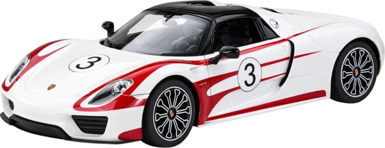 Racen alsof je op het circuit bent, gewoon thuis! De stijlvolle RC auto PORSCHE 918 SPYDER op schaal 1:14 van Rastar biedt nauwkeurige 2,4 GHz-besturing, realistische LED-verlichting en rubberen banden voor uitstekende grip. Ideaal voor zowel kinderen als volwassen liefhebbers van snelle modellen.