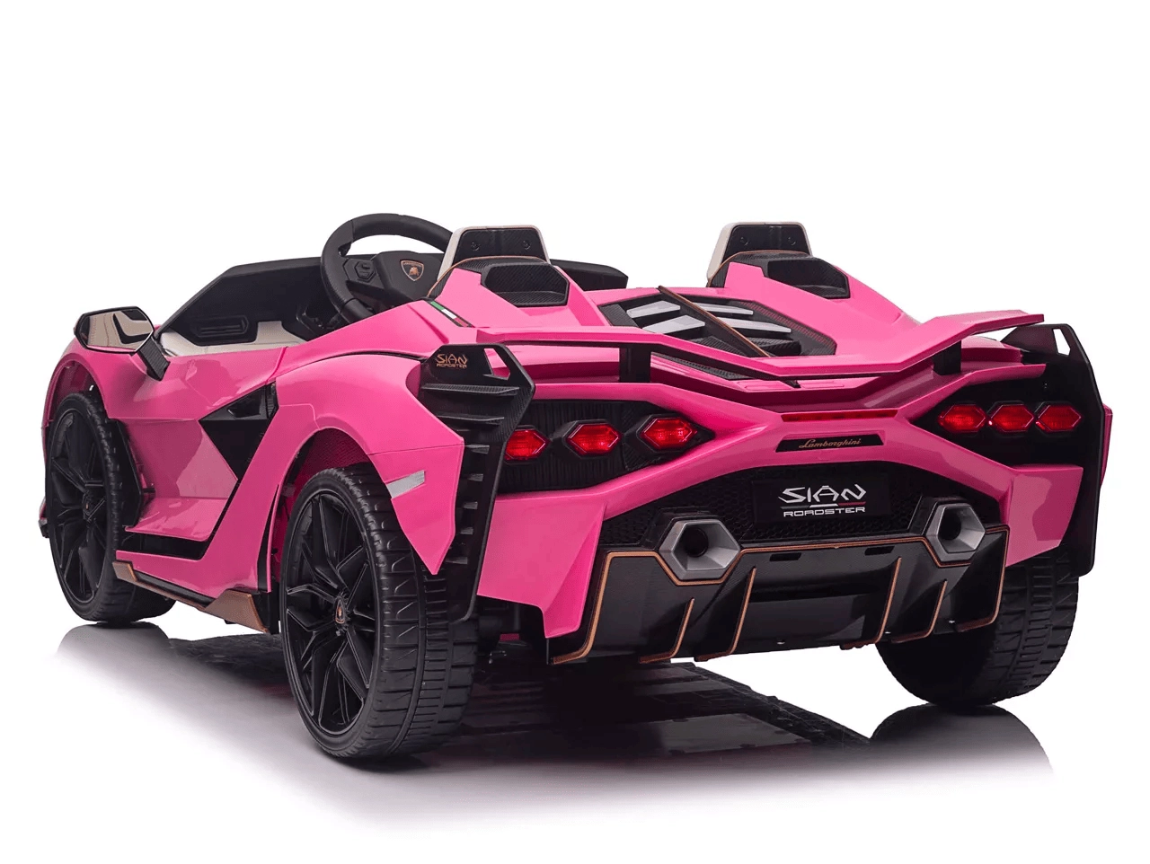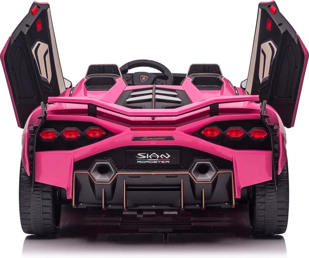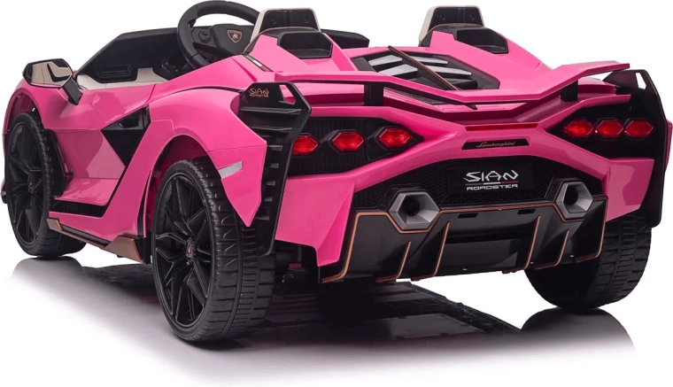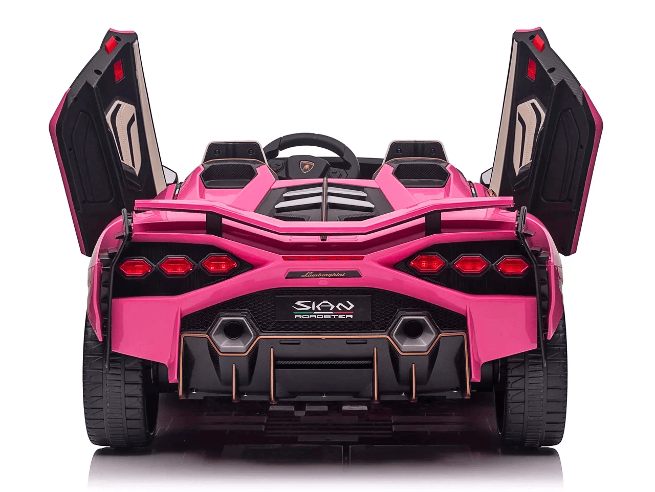 De stijlvolle Qileshi Lamborghini Sian elektrische kinderauto in roze combineert een sportief design, 4 krachtige motoren en veilig bedienen via een 2,4 GHz afstandsbediening. Voorzien van een tweepersoons zitplaats, openslaande deuren, vering op alle wielen en een multimediapaneel met MP3/USB/Bluetooth voor maximaal plezier.