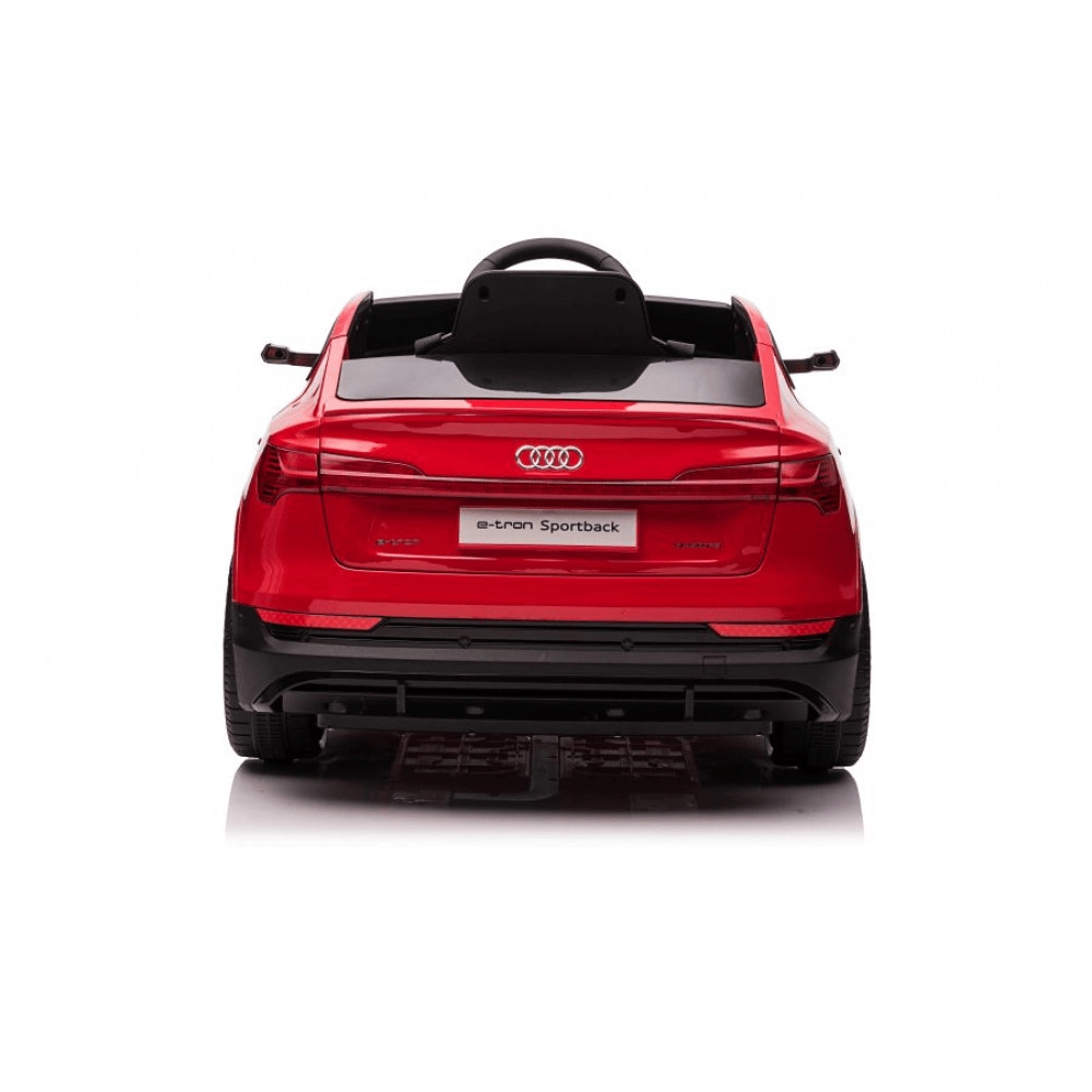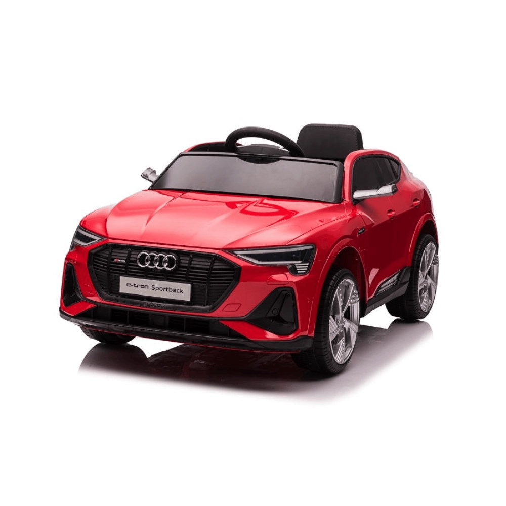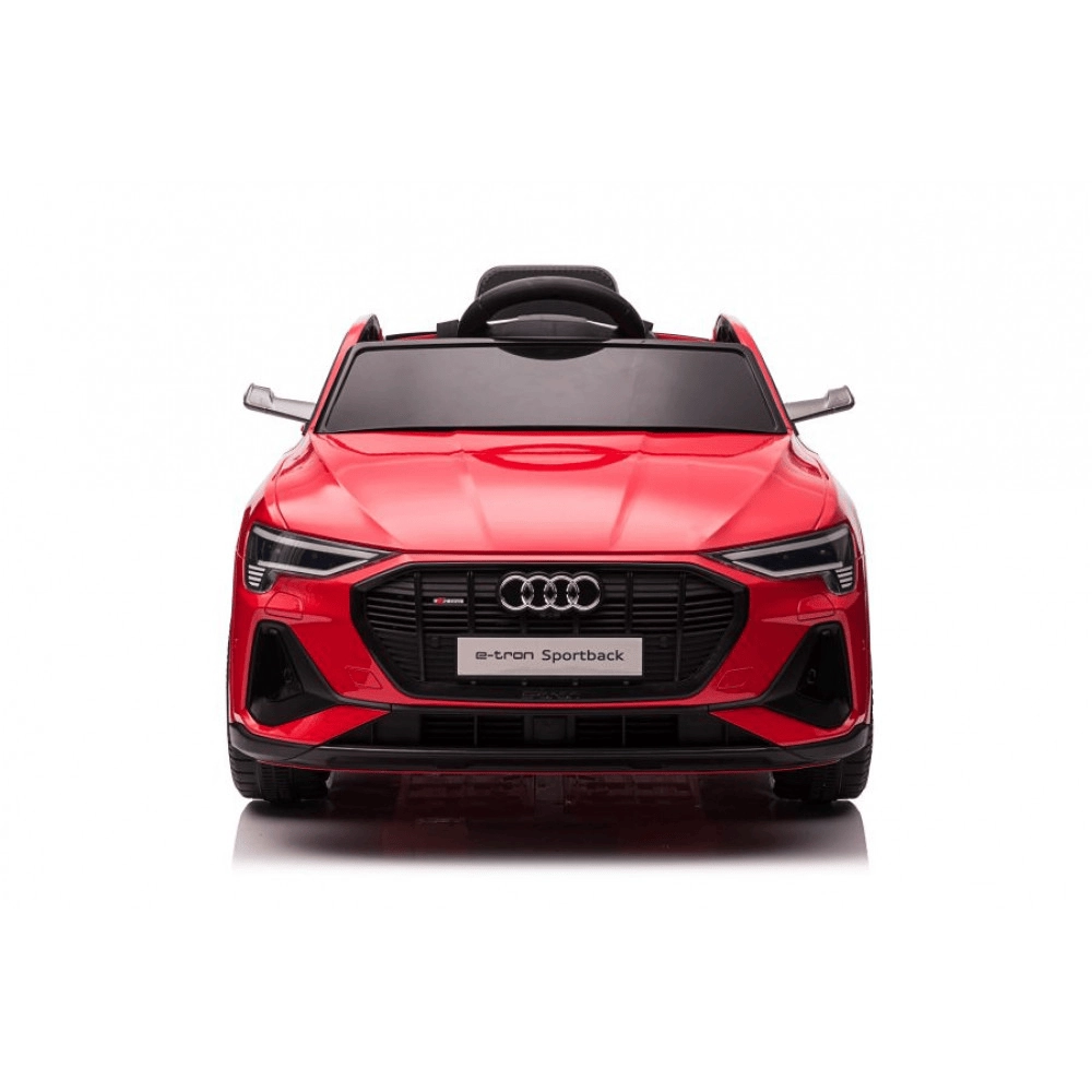 Stijlvolle elektrische kinderauto AUDI e-tron Sportback in een aantrekkelijke rode kleur met vierwielaandrijving (4×30 W), soepel wegrijden en stoppen, 2,4GHz afstandsbediening voor ouders en LED-verlichting. Openende deuren, vierpuntsvering en een multimediapaneel met USB/MP3/TF-ingangen zorgen voor een veilige en leuke rit voor kinderen vanaf ongeveer 3 jaar.