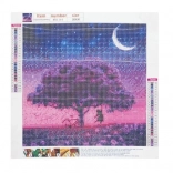 Het boommotief in roze‑paarse tinten met een halve maan zorgt voor een betoverend sprankelend effect dat mooi uitkomt met of zonder lijst. Diamantschilderen is ideaal voor mentale ontspanning, het ontwikkelen van fijne motoriek en creativiteit – geschikt voor zowel beginners als gevorderden.