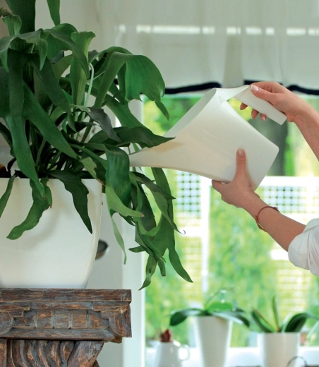 De praktische COUBI gieter combineert functionaliteit met een esthetische uitstraling. Dankzij de doordachte vorm van de tuit geef je zelfs kleine bloempotten nauwkeurig water zonder druppels. Licht maar stevig kunststof garandeert een lange levensduur en eenvoudig dagelijks gebruik in huis, op het balkon en op het terras.