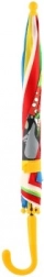Vier verschillende illustraties van de geliefde held op kleurrijke panelen maken van de paraplu een leuk accessoire voor in de regen.
