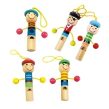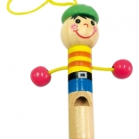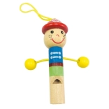 Vrolijk houten fluitje in de vorm van een mannetje is een geweldig hulpmiddel voor de ontwikkeling van het gehoor van kinderen en een leuk accessoire dat ook kan dienen als signaal- of voetbalfluitje.