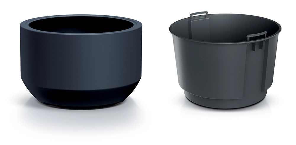 Zoek je een stijlvolle en praktische bloempot die het hele jaar meegaat? Deze antracietkleurige bloempot met inzetstuk combineert een moderne uitstraling met functionele details. De ronde vorm en verbrede rand bieden voldoende ruimte voor wortels en maken water geven en verpotten eenvoudiger.
