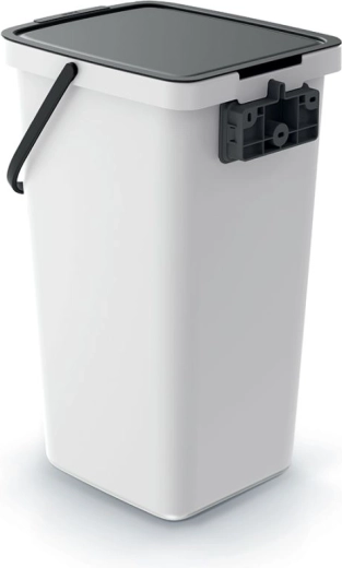 De SYSTEMA Q COLLECT vuilnisbak met een inhoud van 25 liter biedt een slimme en hygiënische oplossing voor zowel gescheiden als regulier afval. De asgrijze behuizing met zwart deksel oogt modern en integreert moeiteloos in diverse stijlen keukens, kantoren of bijkeukens/technische ruimtes. De vergrendeling van het deksel in open stand vereenvoudigt het inwerpen van afval en het uitneembare binnenframe houdt de zak stevig op zijn plaats, zodat alles schoon en netjes blijft.