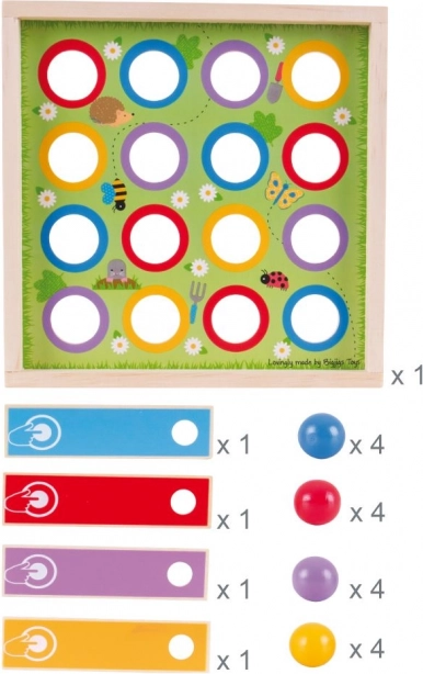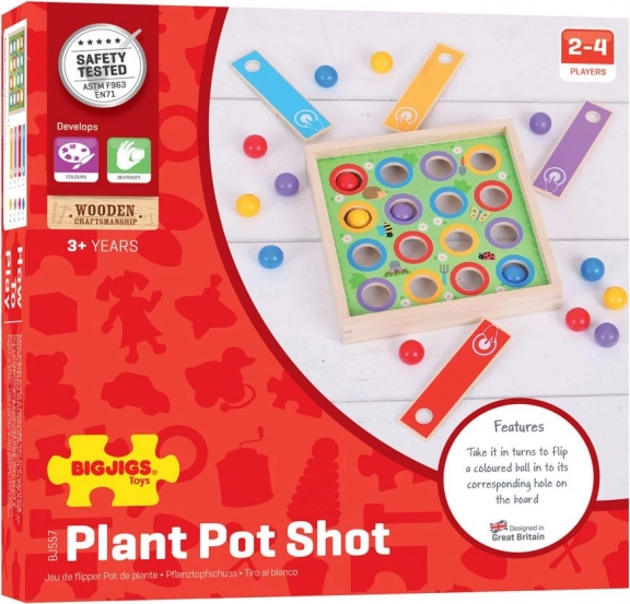 Een leuk familiespel voor kinderen vanaf 3 jaar dat de fijne motoriek, het reactievermogen en de oog-handcoördinatie ontwikkelt. Het doel is om met behulp van lanceerders gekleurde balletjes in de overeenkomstige gaten op het bord te schieten. Spel voor 2–4 spelers in rood, blauw, geel en paars. Gemaakt van verantwoord verkregen hout en voldoet aan de Europese veiligheidsnormen.