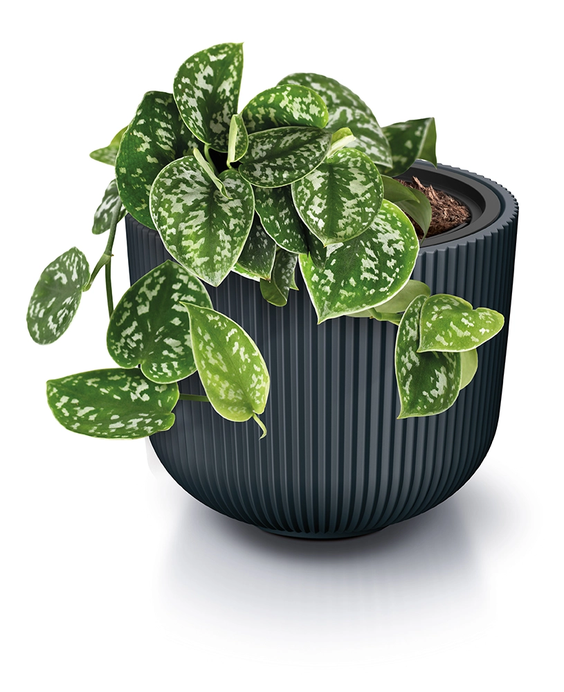 De MILLY bloempot in antraciet combineert stijl en functionaliteit. De verticale ribbelstructuur geeft een verfijnde look en past perfect bij moderne interieurs en buitenruimtes. Dankzij de praktische inzet hoeft u de pot niet tot bovenaan met aarde te vullen, wat potgrond bespaart en de plantverzorging vereenvoudigt.