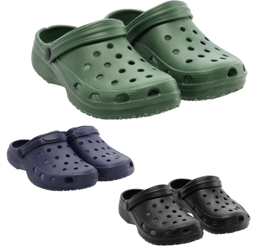 EVA-schuim verlaagt het gewicht van het schoeisel aanzienlijk, is bestand tegen water en slijtage en is gemakkelijk schoon te maken – ideaal voor in de tuin en bij het water.