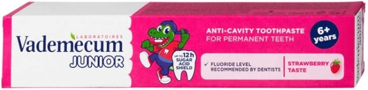 Geef kinderen plezier in het tandenpoetsen met Vademecum Junior 6+ Strawberry. De milde formule is afgestemd op kindertanden en -tandvlees, beschermt effectief tegen tandbederf en ondersteunt de dagelijkse routine van een goede mondhygiëne.