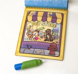 Magisch watertekenen Dieren biedt kinderen schoon en leuk kleurplezier. In deze set vind je vier herbruikbare pagina’s en een waterpen die kleurrijke afbeeldingen tevoorschijn tovert door enkel te bevochtigen.