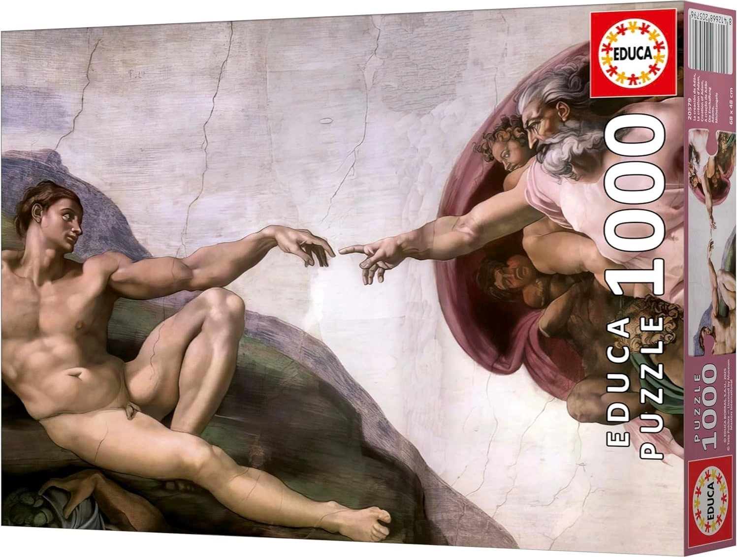 Ontdek de charme van puzzelen met EDUCA De schepping van Adam. Een ideale keuze voor kunstliefhebbers en puzzelfans die preciese stanskwaliteit, hoogwaardige bedrukking en een tijdloos motief geïnspireerd op een meesterwerk waarderen.