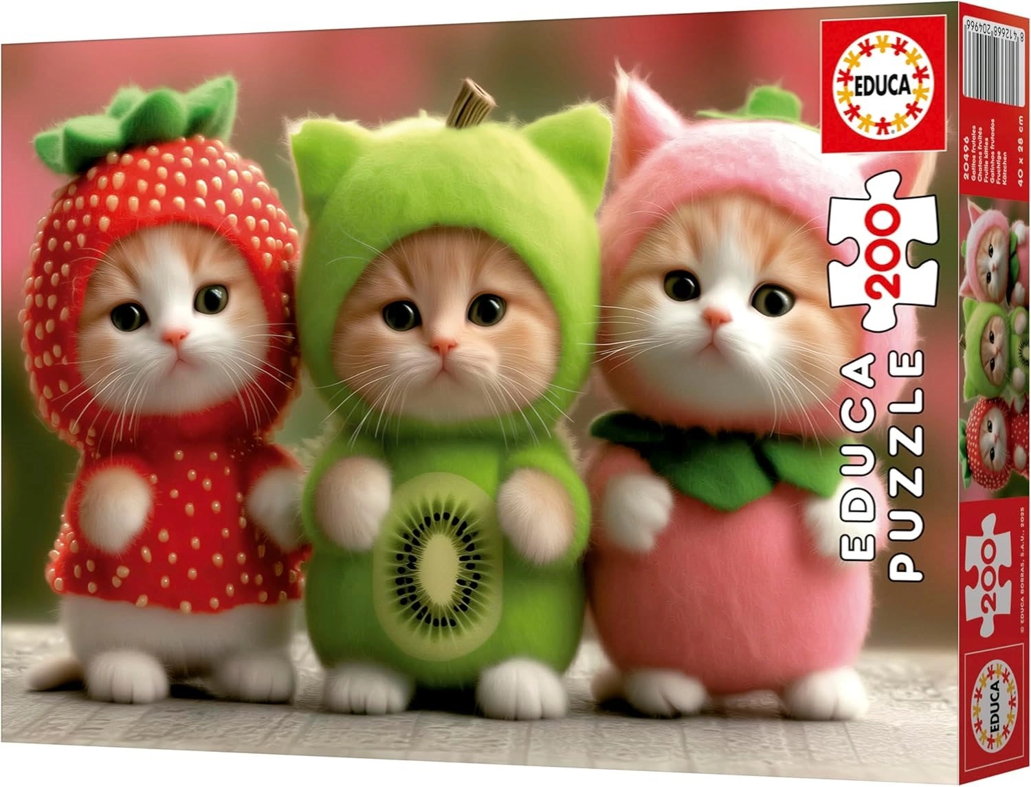 Ontdek de charme van geïllustreerde kittens geïnspireerd op fruit. De EDUCA-puzzel met 200 stukjes verrast met hoogwaardige druk, levendige kleuren en nauwkeurige stansvormen, waardoor de stukjes perfect in elkaar passen. Het formaat van ca. 40 × 28 cm na het leggen is ideaal voor kleinere werkvlakken en om nadien tentoon te stellen.