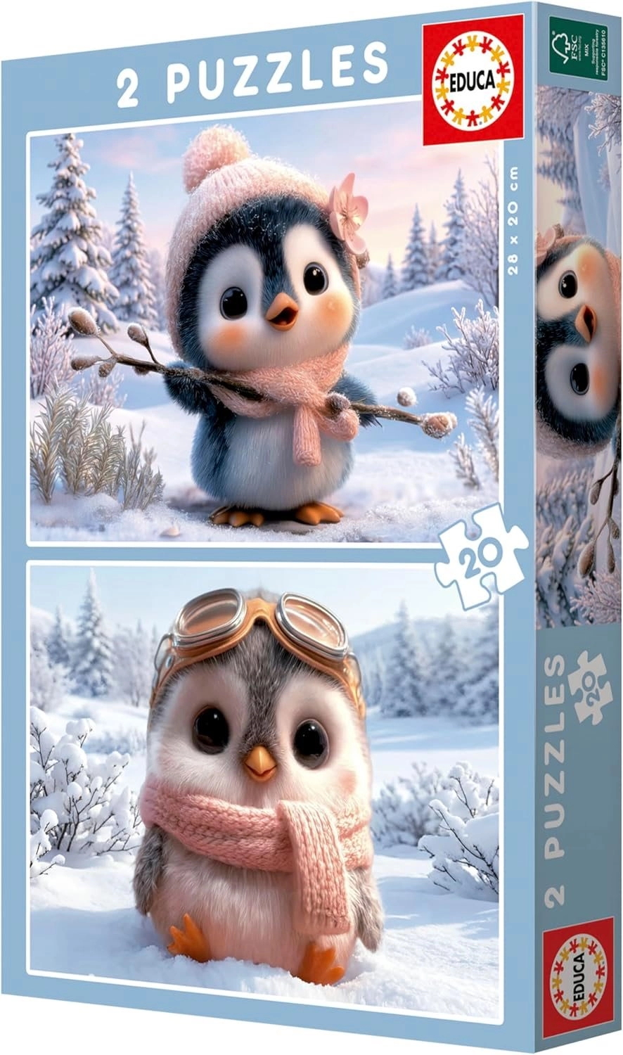 Geniet van plezier voor de allerkleinsten met deze dubbelverpakking puzzels van het merk EDUCA. Twee losse legpuzzels van 20 stukjes met schattige pinguïns stimuleren fijne motoriek, geduld en logisch denken. Elke voltooide puzzel meet ongeveer 28 × 20 cm – de ideale grootte voor kinderhanden en de speeltafel.