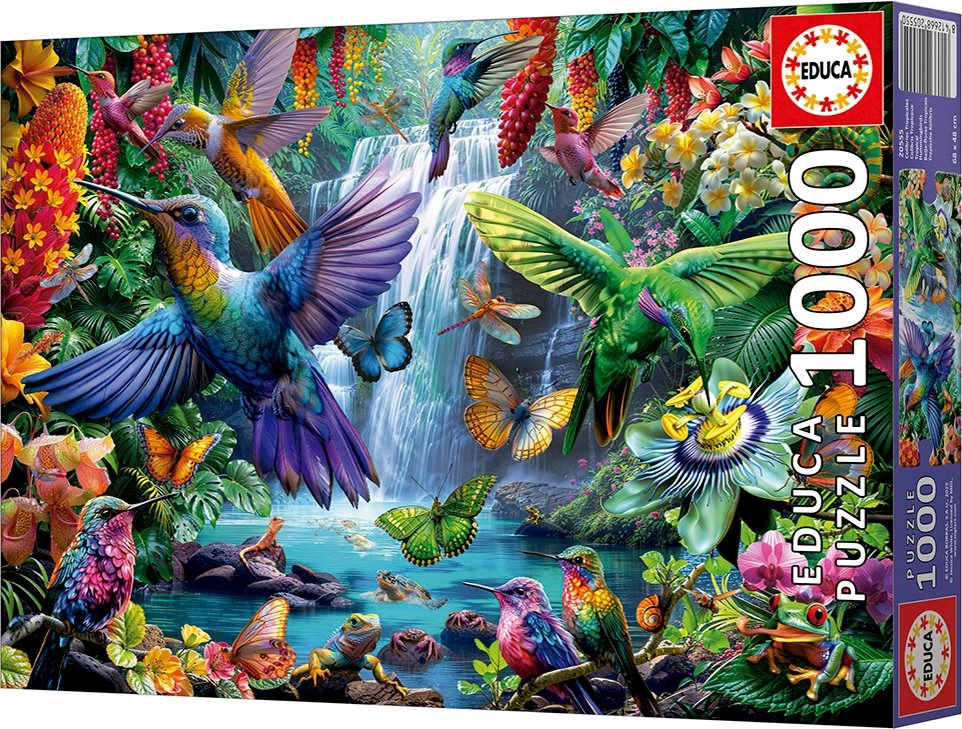 Geniet van ontspanning tijdens het leggen van een prachtige afbeelding met het motief van tropische kolibries. Kwaliteitspuzzel van EDUCA met 1000 stukjes die zowel beginners als gevorderden zal bevallen en nauwkeurige uitsparingen, levendige kleuren en gratis lijm voor de definitieve fixatie biedt.