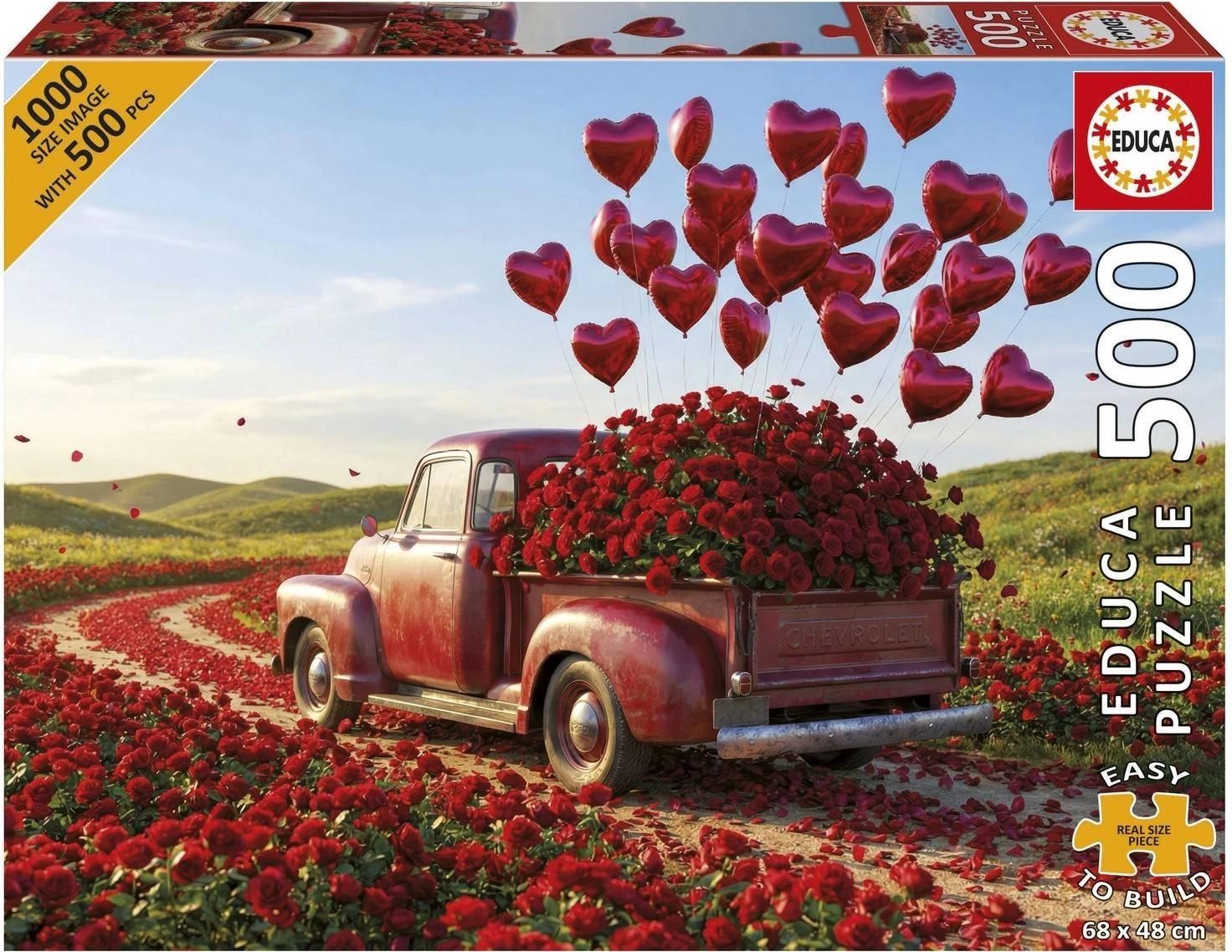 Geniet van ontspanning met een romantisch motief van een pick-up vol harten. Deze kwalitatieve puzzel met 500 stukjes biedt ontspannen legplezier en bevat gratis lijm in de verpakking. Na het leggen ontstaat een afbeelding van ca. 68 × 48 cm, ideaal om in te lijsten als Valentijnscadeau of als decoratie voor in huis.
