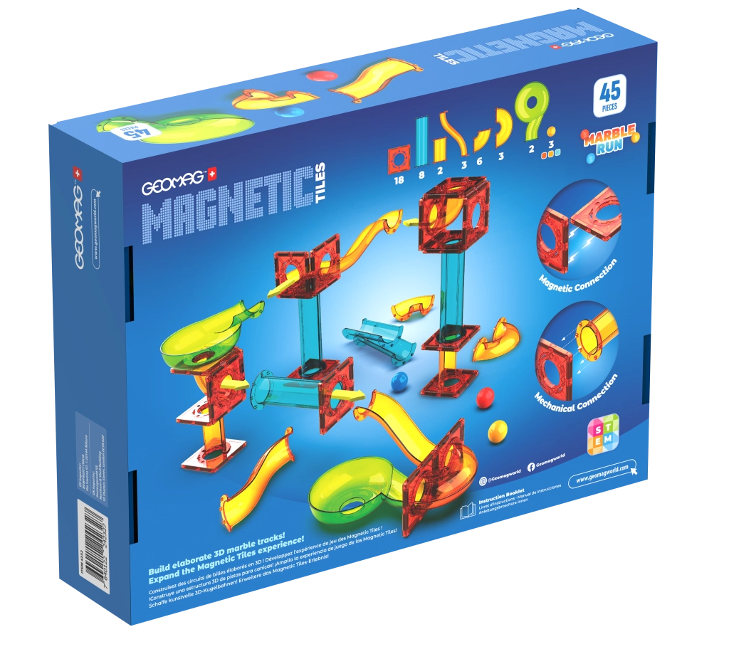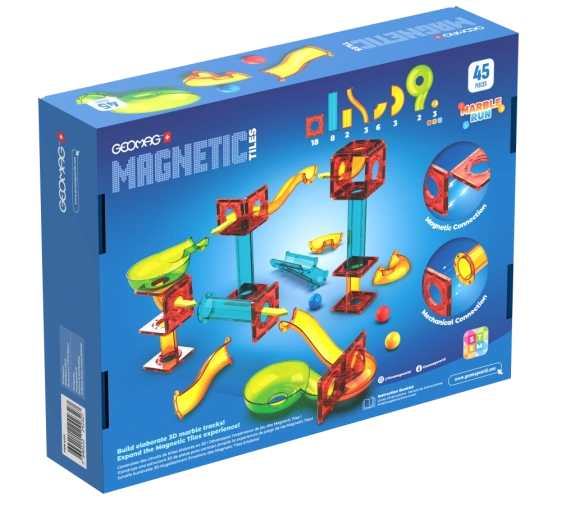 Ontdek de creatieve wereld van de GEOMAG-bouwset met een knikkerbaan van 45 onderdelen, die kinderen urenlang plezier én leren biedt. De set bevat kleurrijke, transparante onderdelen, banen en bochten en magnetische elementen voor eenvoudig verbinden en stabiliteit. Ideaal voor de ontwikkeling van logica, motoriek en verbeeldingskracht. Geschikt vanaf 3 jaar.