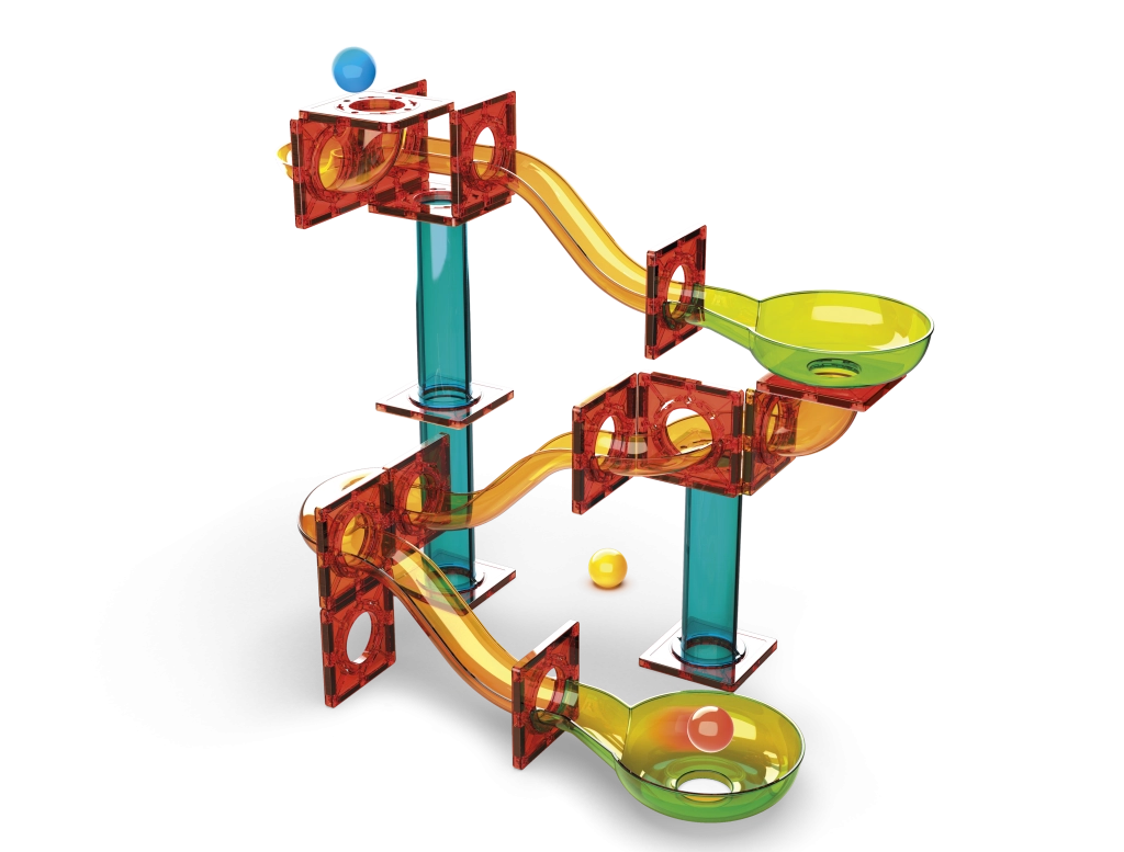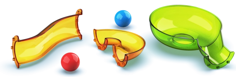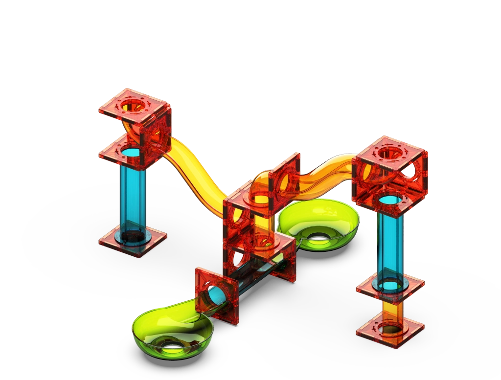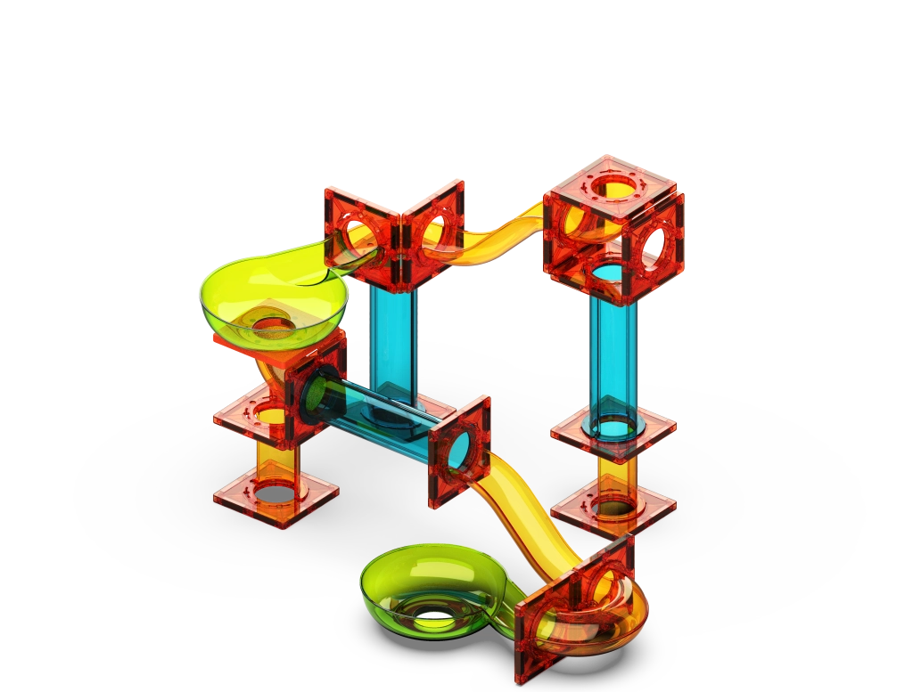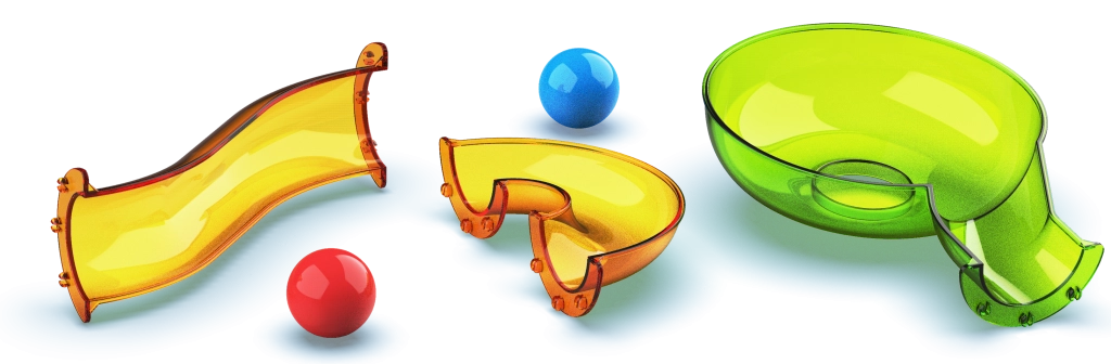- Duurzame, kleurrijke en transparante componenten voor maximaal overzicht van de beweging van de knikkers