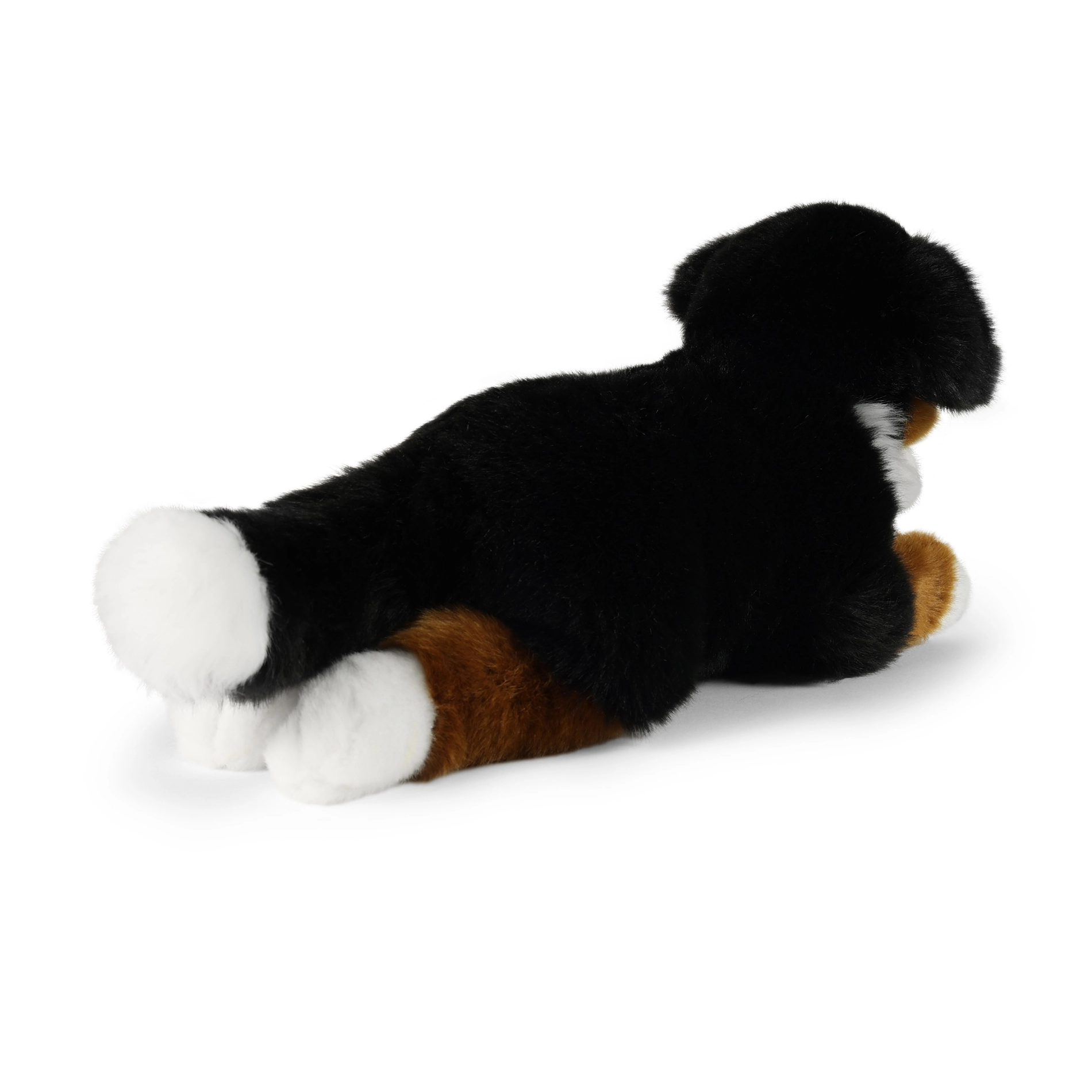 Schattige pluchen Berner Sennenhond van 34 cm, gemaakt van heerlijk zachte, gladde pluche en gevuld met gerecyclede materialen. Dankzij het handmatige vakmanschap oogt hij realistisch, is hij veilig zelfs voor pasgeborenen en is hij zowel een knuffelmaatje in bed als een stijlvolle decoratie voor de kinderkamer.