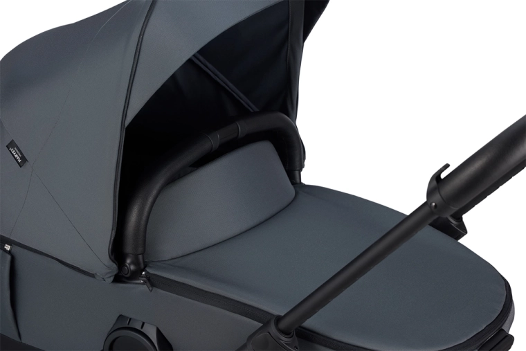 De kinderwagen is klaar om met het gezin mee te groeien – van wieg of autostoeltje tot sportzit, zowel met de rijrichting mee als tegen de rijrichting in. Hij kan worden omgebouwd tot een duo-kinderwagen voor broertjes en zusjes of een tweeling. Het frame vouwt compact op, heeft een in hoogte verstelbare duwbeugel en een afgesloten mand met een draagvermogen tot 10 kg. Premium gerecyclede stoffen en lederen details geven de wagen een tijdloze uitstraling.