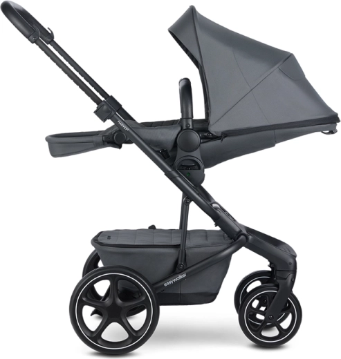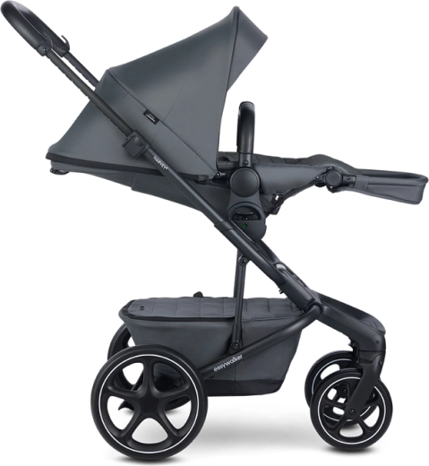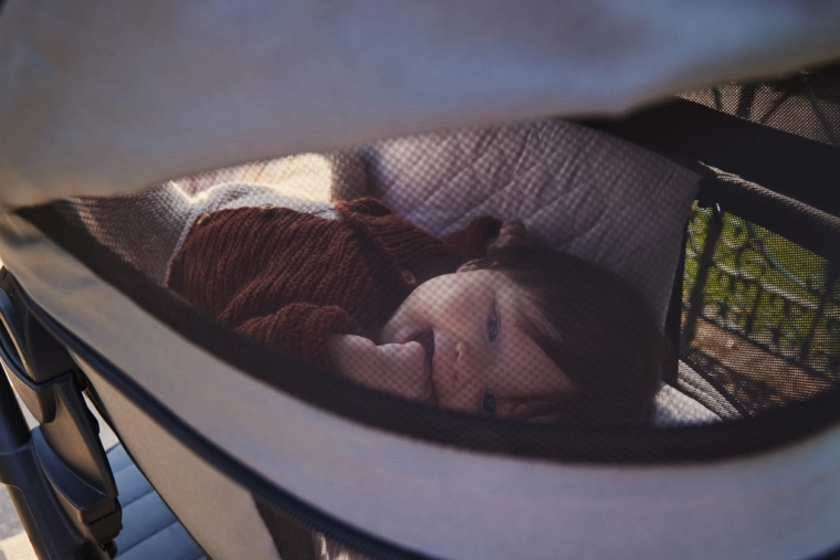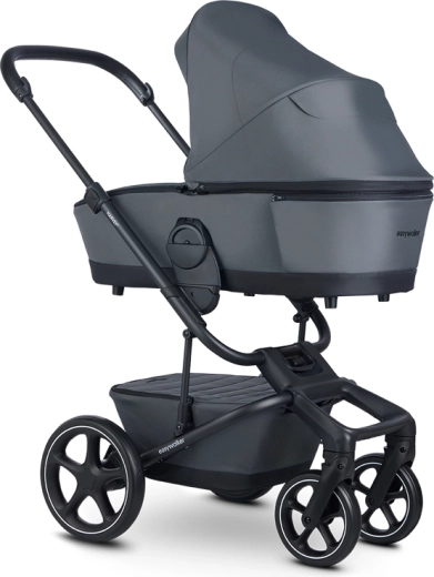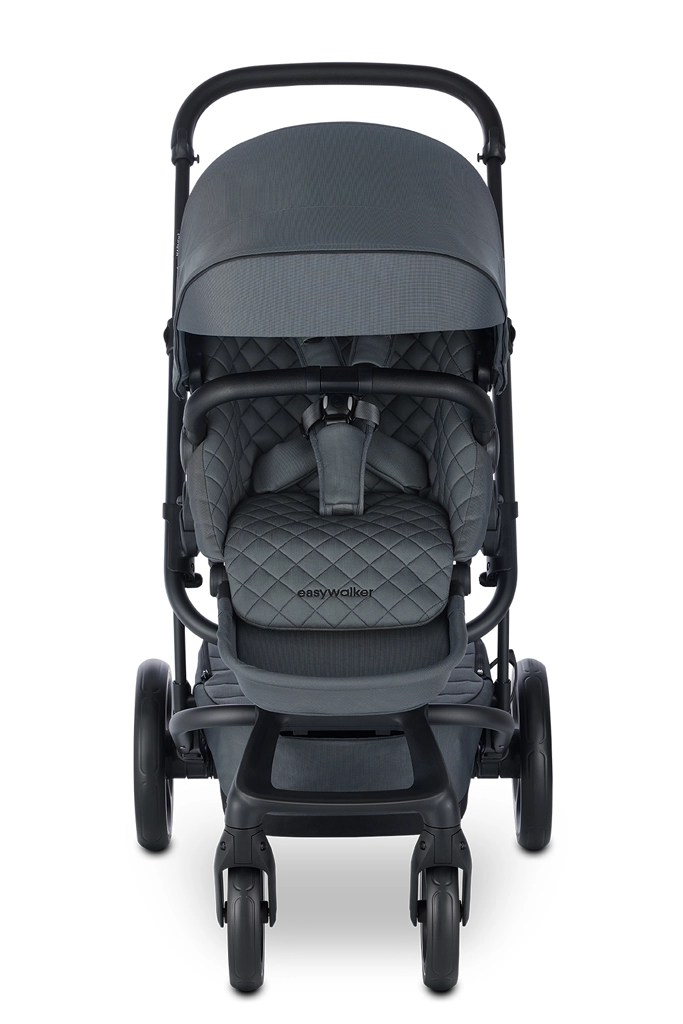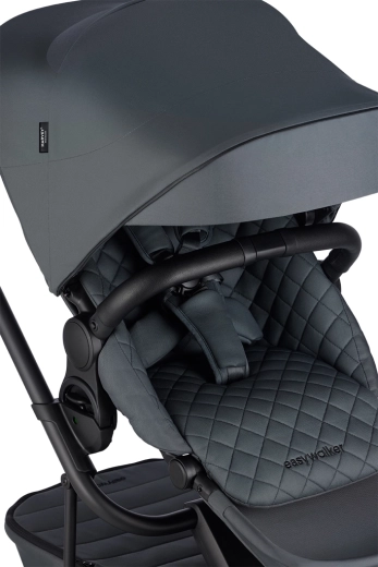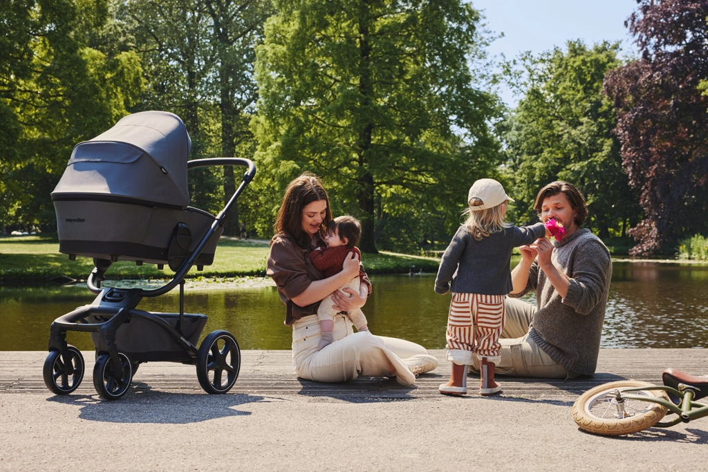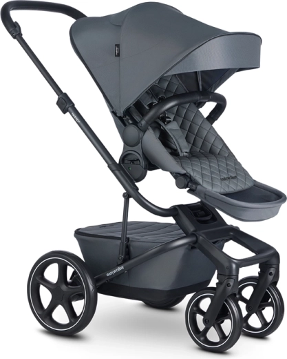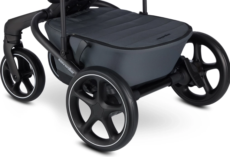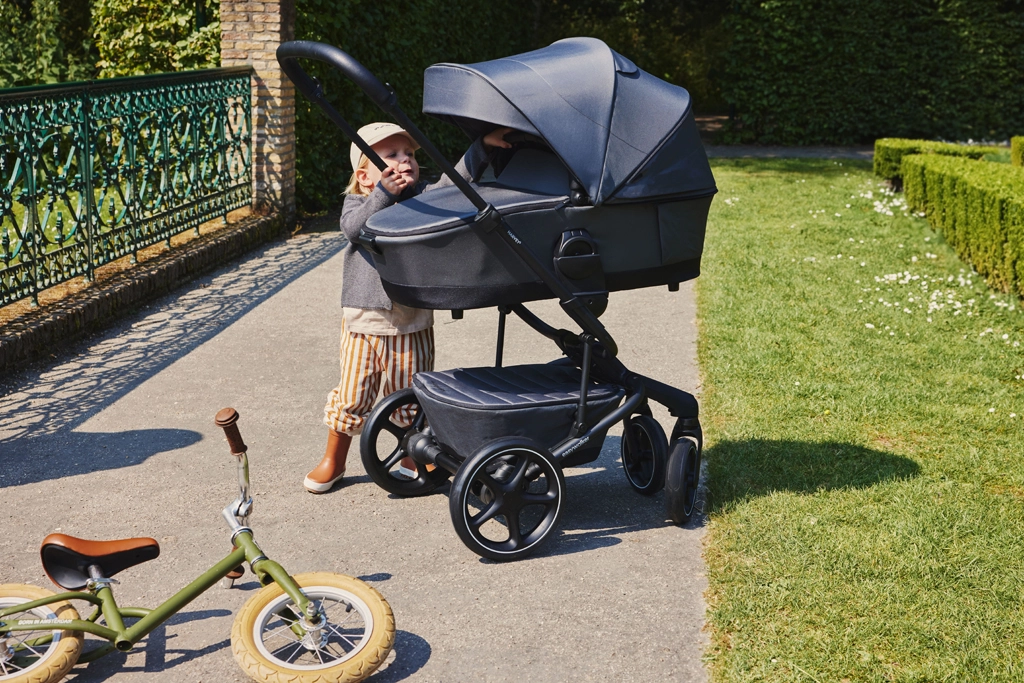 Grote achterwielen, zwenkende voorwielen en hoogwaardige vering zorgen voor een vloeiende rit in de stad en in het park. De kinderwagen is eenvoudig met één hand te besturen en houdt koers, zelfs op oneffenheden.