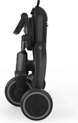 Opgevouwen in enkele seconden. De dubbele vergrendeling voorkomt ongewenst uitklappen en de opgevouwen driewieler kan stabiel zowel verticaal als horizontaal worden neergezet – ideaal voor in huis, lift en auto.