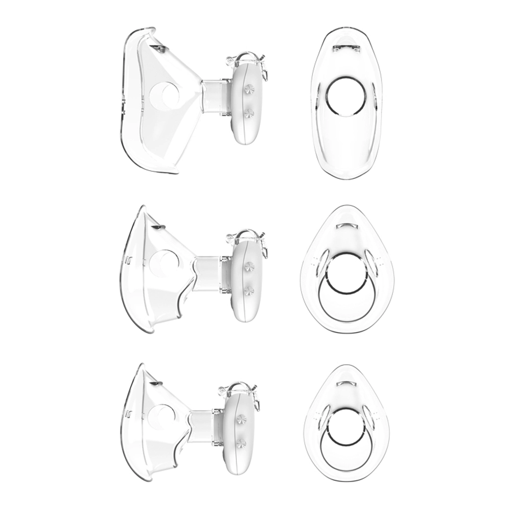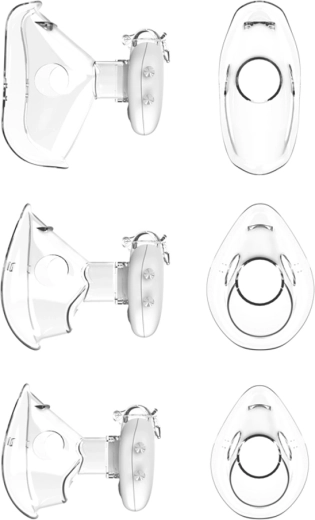 De verpakking bevat 3 maskermaten en een mondstuk, zodat je eenvoudig een comfortabele inhalatiemethode voor elke leeftijd kiest.