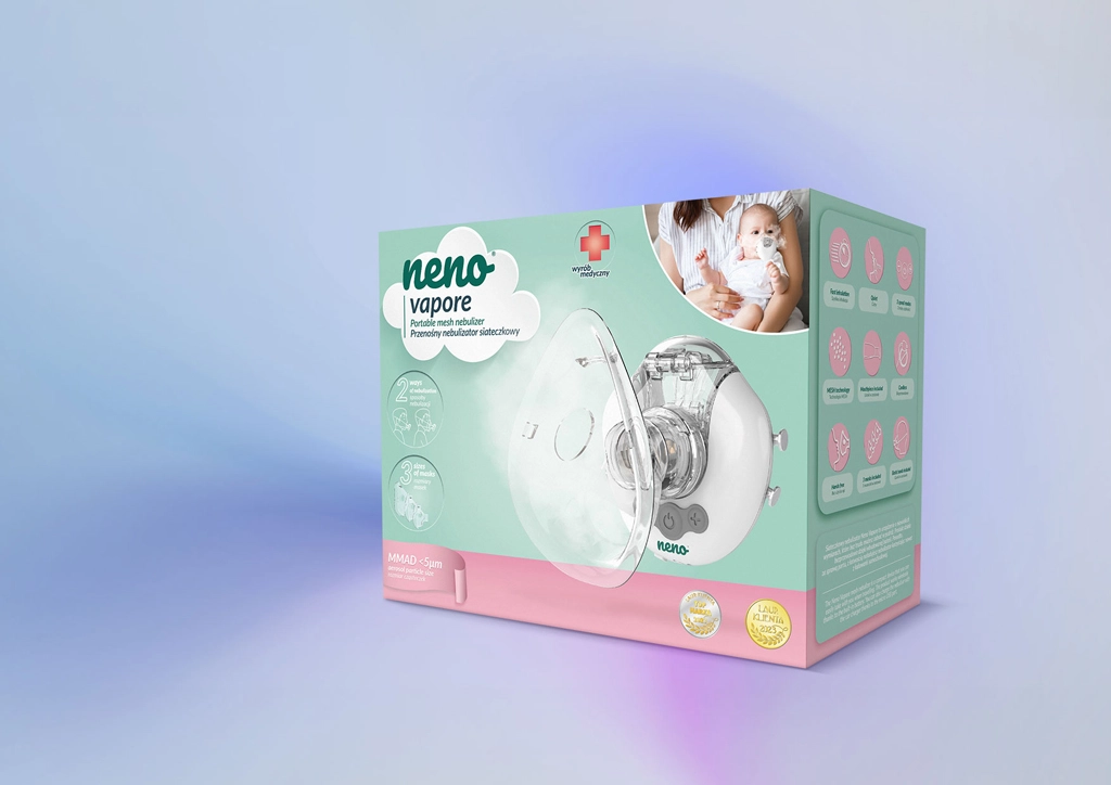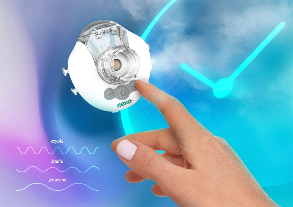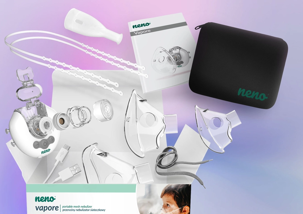 Neno Vapore is een veelzijdige draadloze inhalator, ontworpen voor pasgeborenen, kinderen en volwassenen. Dankzij de fijne aerosolnevel met deeltjes MMAD <5 μm brengt hij het medicijn effectief naar de lagere luchtwegen. De stille werking is ideaal voor gebruik in de avond en ’s nachts, terwijl drie vernevelingsmodi je in staat stellen de intensiteit van de inhalatie aan de actuele behoeften aan te passen.