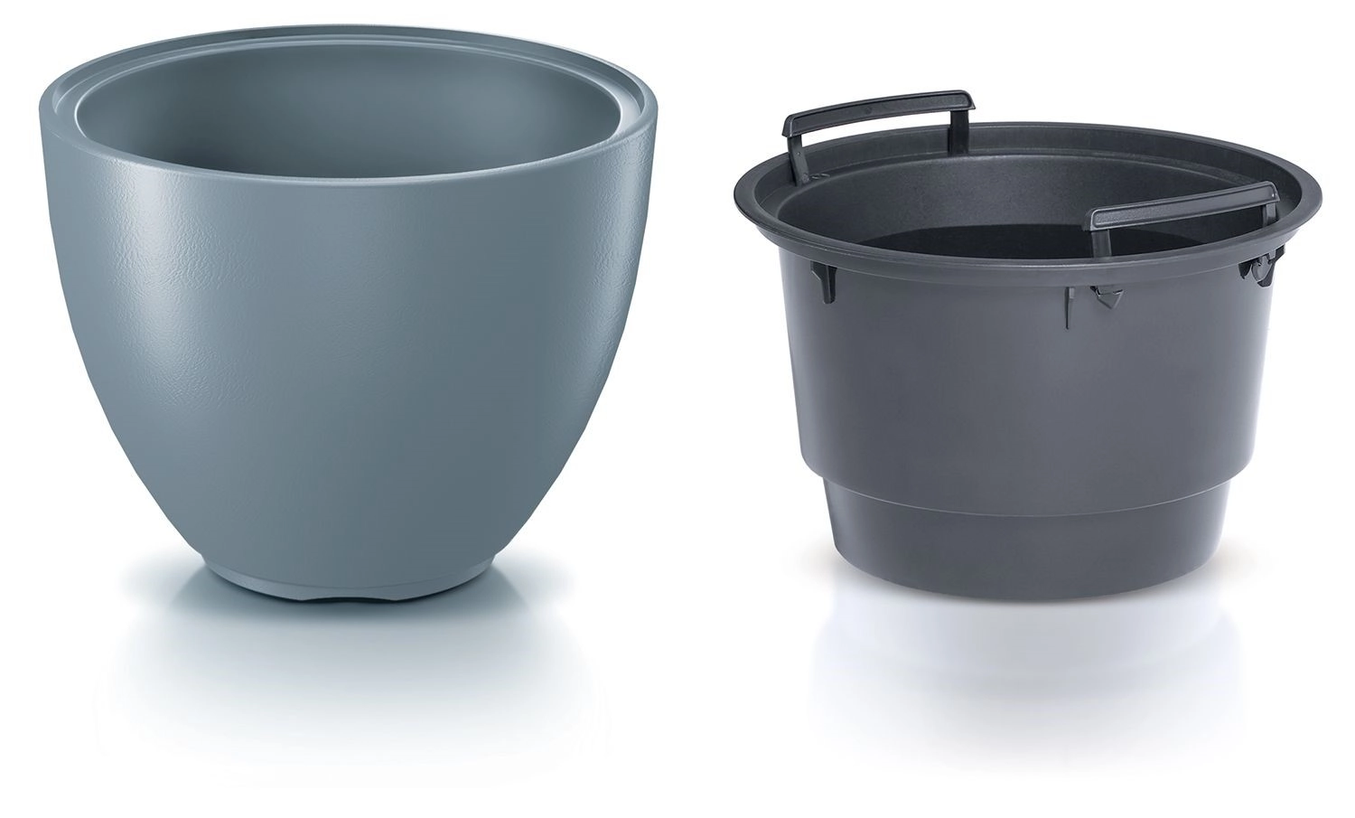 De binnenste kunststof inzet met handgrepen maakt het eenvoudig om de plant snel uit te nemen bij het water geven, bemesten of verpotten – zonder rommel en onnodige moeite.