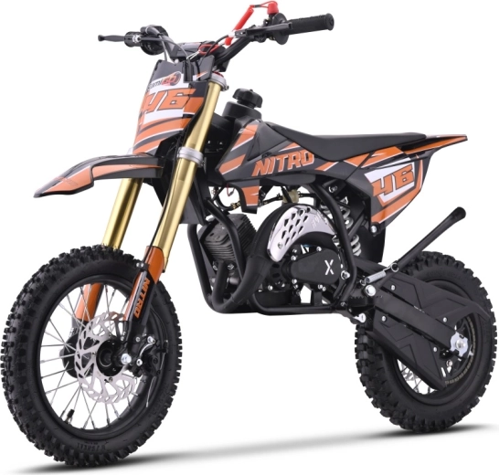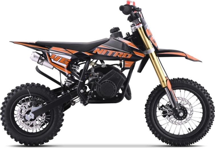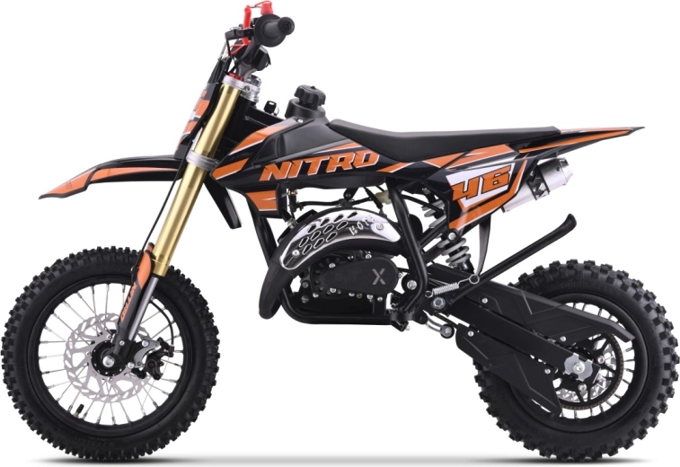 De minicross NITRO 60cc is gebouwd op een poedergecoat stalen frame met een versterkte achterbrug. De eencilinder tweetaktmotor met 60 cm³ en een kegelvormig luchtfilter zorgt voor vlotte acceleratie, eenvoudige onderhoudbaarheid en betrouwbaar gebruik. De handstarter maakt snel starten overal mogelijk.