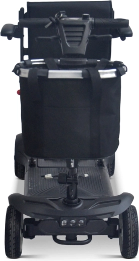 Voor maximaal comfort is de scooter uitgerust met een gepolsterde zitting met zachte armleuningen, een waterdichte hoes met rits voor eenvoudig wassen en praktische reflectoren. De snelsluit‑voor mand met extra bevestigingen en het achterste vak maken veilig vervoer van boodschappen of persoonlijke spullen mogelijk. Wanneer handmatige verplaatsing nodig is, kan de duwfunctie worden geactiveerd, en helpen het transporthandvat aan de voorkant en de hulprollen achter.