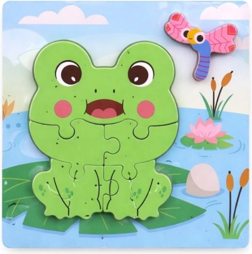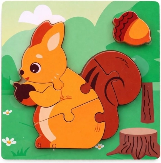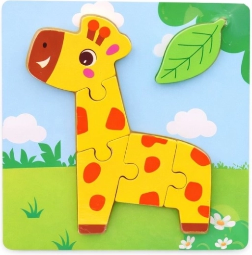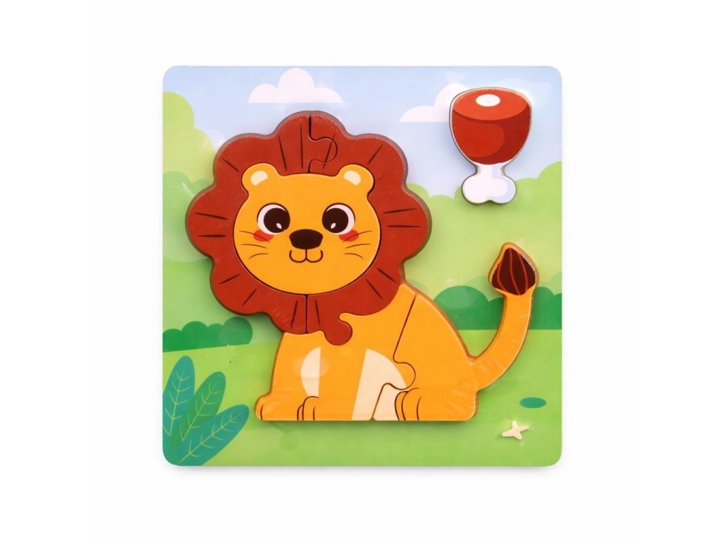 Ontdek de speelse houten puzzel met dieren met afmetingen 15 × 15 cm, ideaal voor kinderen vanaf 3 jaar. Kwalitatieve houten stukjes in een praktische folie- verpakking ondersteunen de fijne motoriek, creativiteit en de eerste logische vaardigheden. Geweldige en educatieve fun voor kleine ontdekkers.