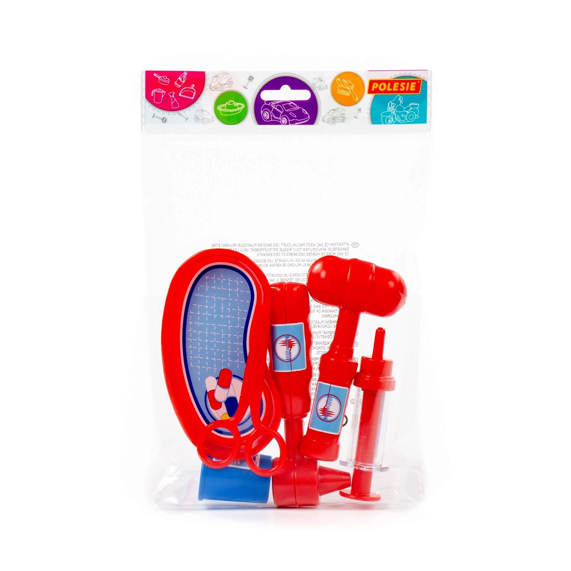 Leuke dokterset voor kinderen met 6 basisinstrumenten (schaar, spuit, schaaltje, otoscoop, reflexhamertje en maatbeker) die fantasie en empathie stimuleert en helpt angst voor de medische omgeving te verminderen. Ideaal om thuis en met vriendjes te spelen.