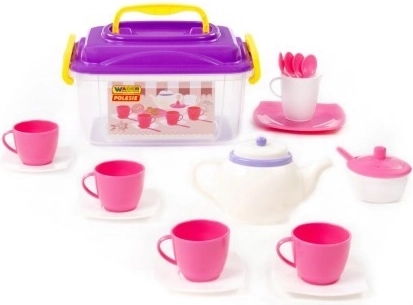 Stijlvol kinder theeservies Alice voor 4 personen met in totaal 19 onderdelen voor perfect rollenspel rond serveren. De set met theepot, suikerpot, melkkannetje, kopjes en schoteltjes stimuleert de fantasie, sociale vaardigheden en de fijne motoriek van kinderen. Ideaal voor dagelijks spelen thuis en met vriendjes.