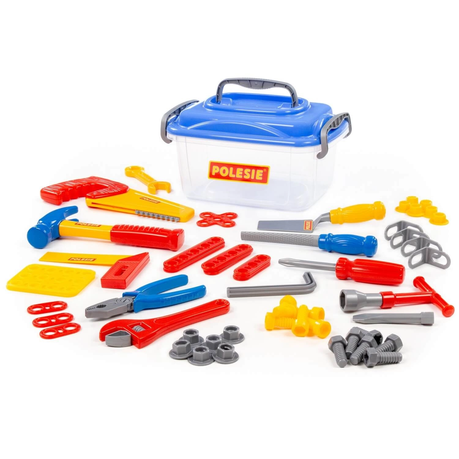 Ontdek speelplezier en veiligheid met de POLESIE gereedschapsset met 58 delen in een praktische box. Kinderen genieten van realistische tools zoals een hamer, zaag, schroevendraaiers met bits, sleutels en tangen, en dankzij schroeven, moeren en verbindingsstukken kunnen ze eigen constructies bouwen. De set stimuleert fijne motoriek, coördinatie, technisch inzicht en creativiteit – alles overzichtelijk opgeborgen in een stevige draagbare box.