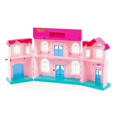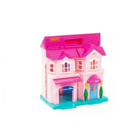 Openklapbare secties bieden eenvoudige toegang tot de kamers en veelzijdig spel. Pasteltinten, het roze dak en decoratieve details trekken direct de aandacht en ondersteunen de ontwikkeling van de fijne motoriek en de verbeelding.