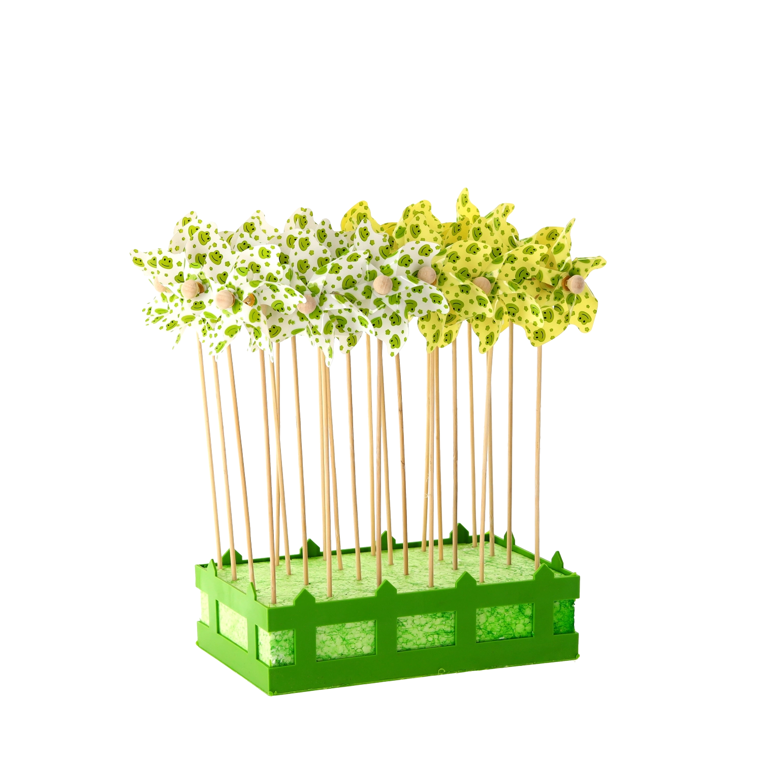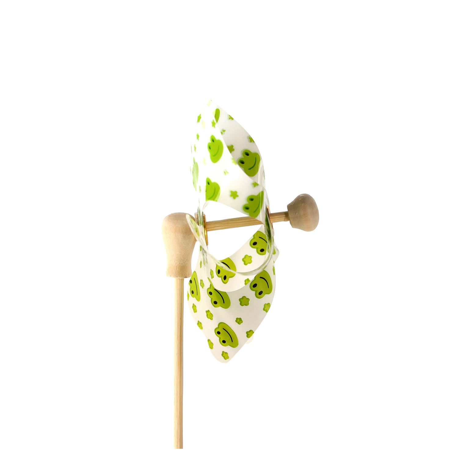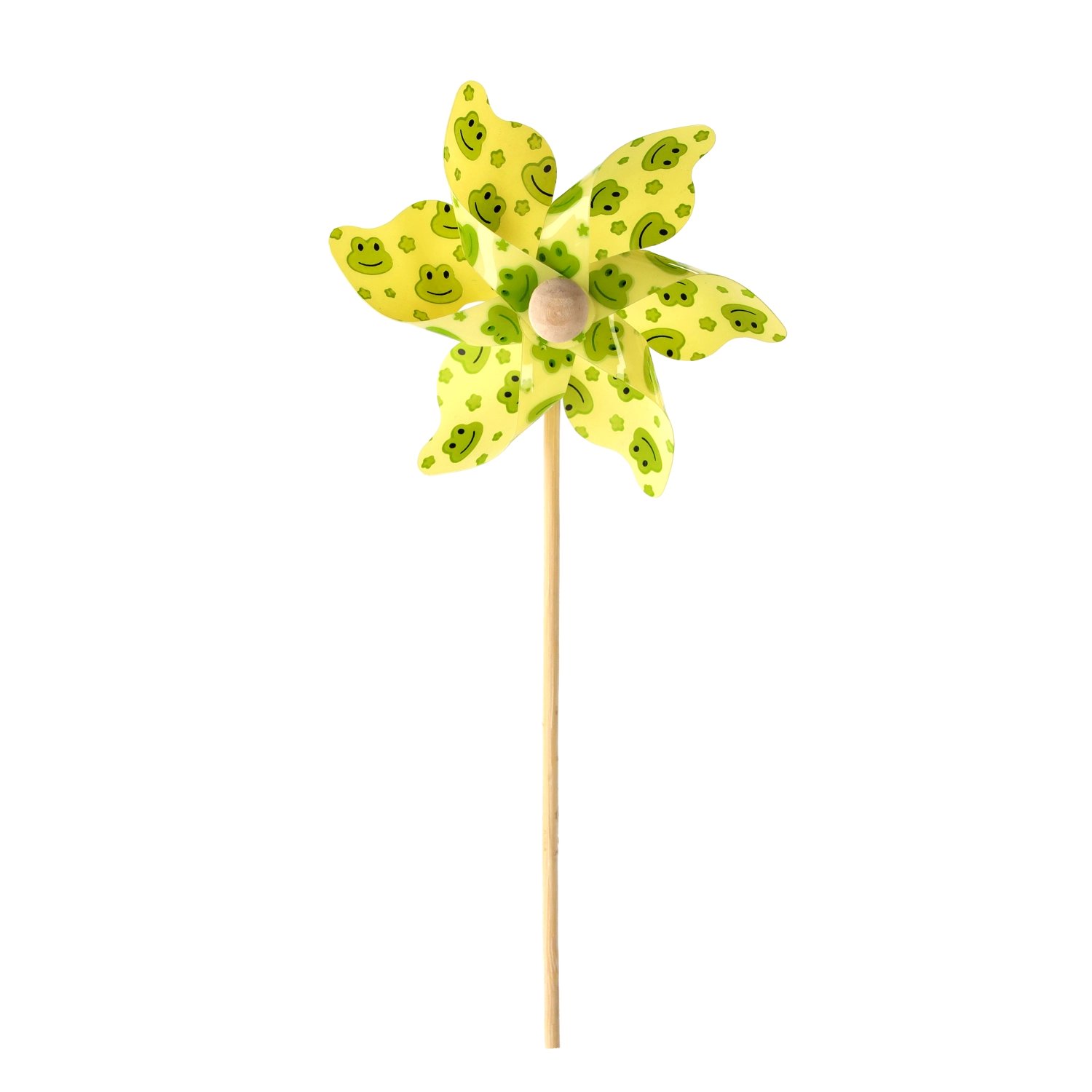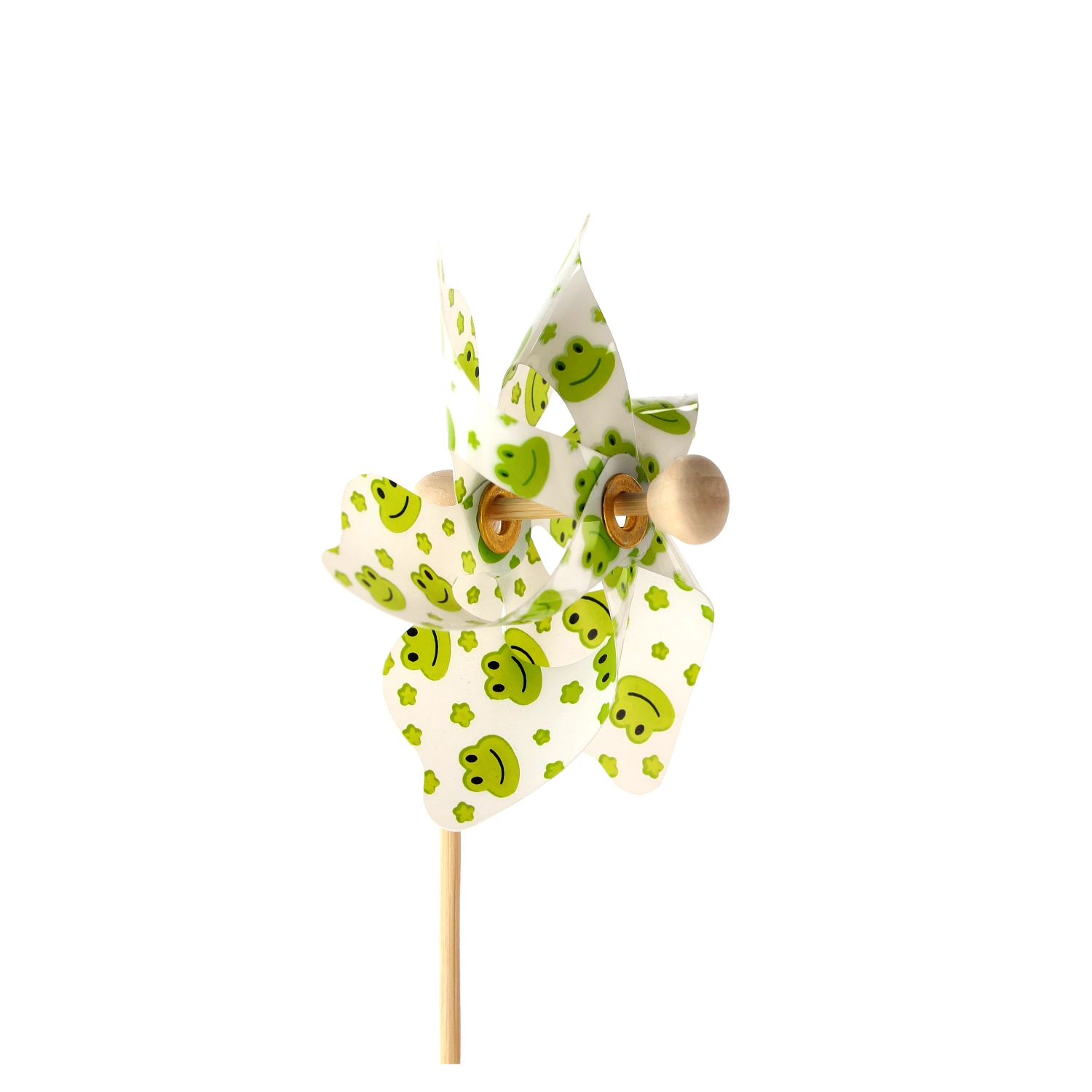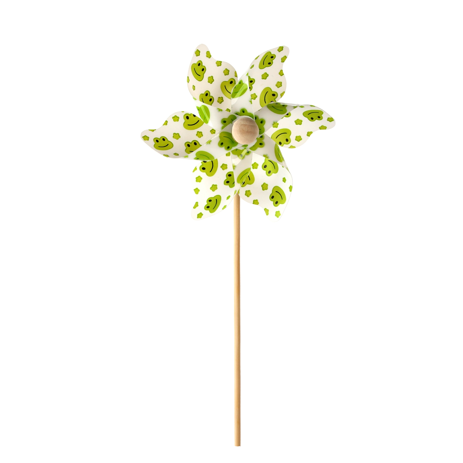 Het windmolentje met kikkertjes is een schattige decoratie voor zowel kinderen als volwassenen. Dankzij de lichte PVC wieken draait het al bij een zacht briesje en brengt het beweging, kleur en plezier in de ruimte. De natuurlijke bamboestok zorgt voor stabiliteit en een prettige uitstraling.