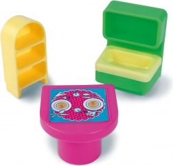 De set bevat uitgebreide accessoires en een stickervel om het interieur af te werken. Kinderen kunnen het huisje eenvoudig naar wens aanpassen.
