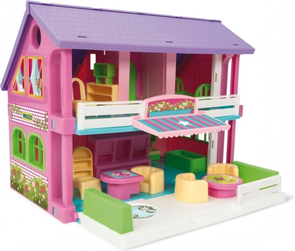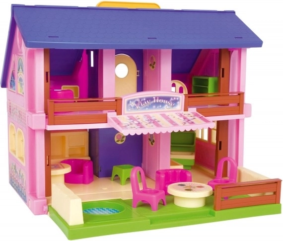 Het stijlvolle roze poppenhuis uit de Play House-serie biedt kinderen een veelzijdige speelruimte – van het terras en de woonkamer via de keuken tot de kamertjes op de verdieping. Openende ramen, deuren en trappen maken het spel realistischer en met 14 meubelstukken en decoratieve stickers kun je het interieur tot in de puntjes afstemmen.