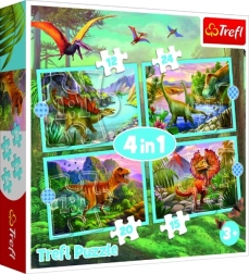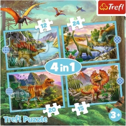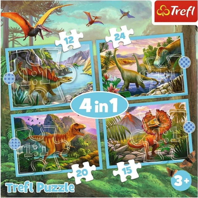 Trefl puzzel 4 in 1 Uitzonderlijke dinosaurussen is een set die elke kleine archeoloog zal verrassen! Bevat vier verschillende legpuzzels met dinosaurusmotieven, elk met een ander aantal stukjes (12, 15, 20, 24). Na het leggen ontstaan vier afbeeldingen met afmetingen 285 x 205 mm, wat plezier garandeert voor zowel jongere als oudere puzzelfans.