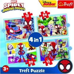 Kinder set met 4 puzzels in 1 met motieven van MARVEL Spidey and His Amazing Friends brengt plezier en leren voor kinderen vanaf 3 jaar. De verschillende moeilijkheidsgraden (12, 15, 20 en 24 stukjes) ondersteunen de ontwikkeling van motoriek, logisch denken en geduld. Kwalitatieve afwerking en milieuvriendelijke materialen zorgen voor veilig en langdurig speelplezier.