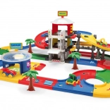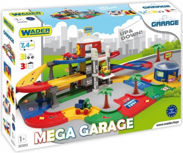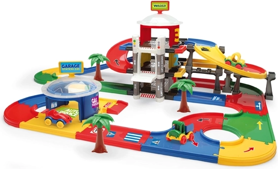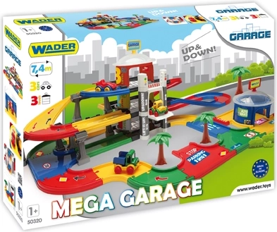 De Mega-garage van Wader biedt kinderen vanaf 1 jaar urenlang creatief speelplezier. Drie verdiepingen die met hellingen en kruispunten zijn verbonden vormen een vloeiende route van 7,4 m, waarop kinderen sturen, parkeren en racen kunnen oefenen. Robuuste kunststof onderdelen in vrolijke kleuren voelen prettig aan en zijn gemakkelijk te onderhouden.