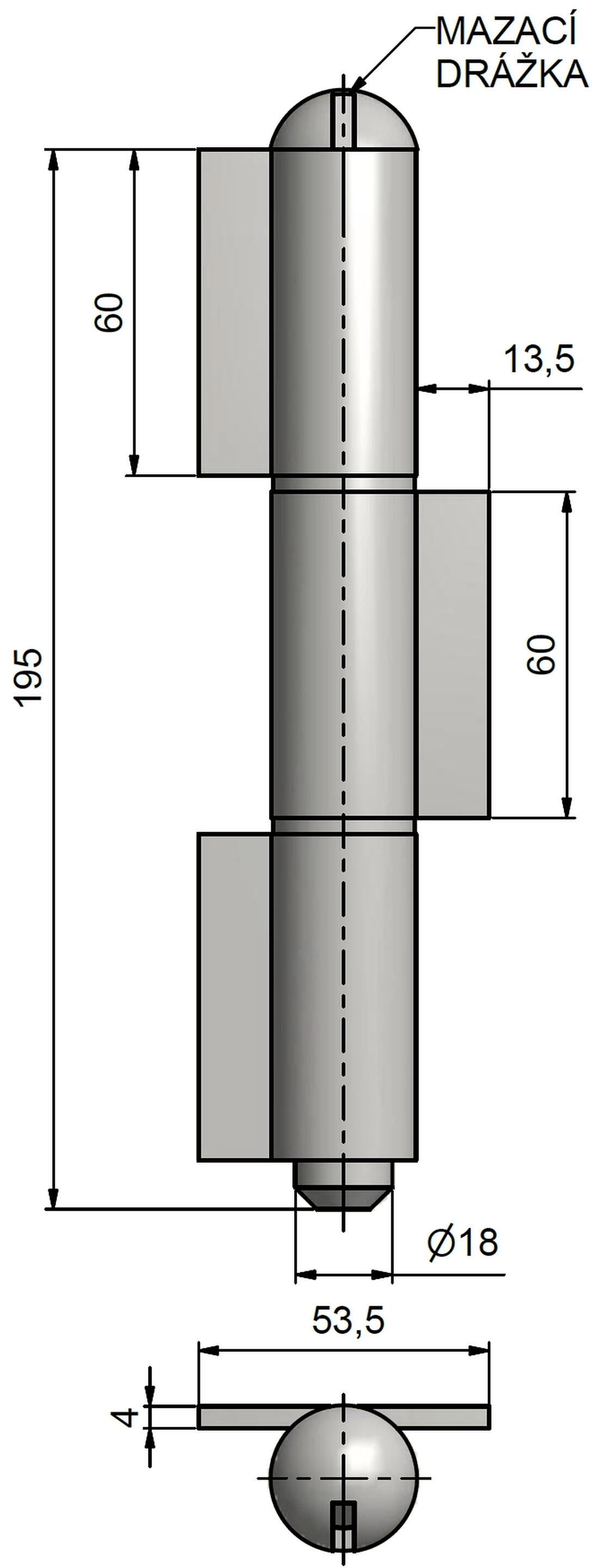 Het penscharnier van 180 mm is bedoeld voor stevige en veilige bevestiging van grootschalige deur- of poortvleugels aan het kozijn. Dankzij de robuuste constructie biedt het stabiele geleiding van de vleugel en een vloeiende werking bij frequent openen en sluiten.