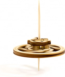 Nauwkeurig uitgebalanceerde tol die na het aanzwengelen soepel draait op een vlak oppervlak. Klein model, groot plezier.